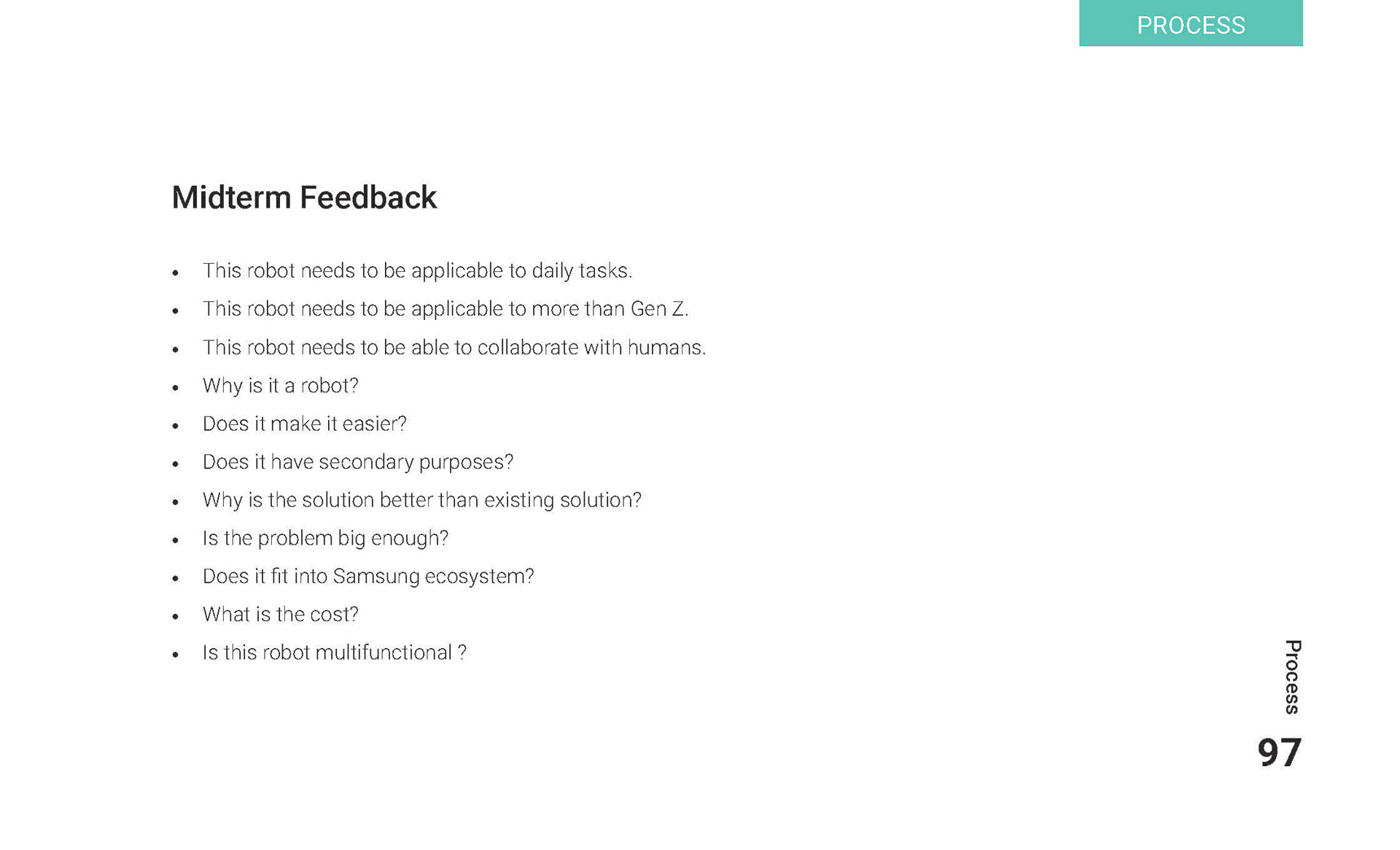 Worked as UX and industrial designer for a sponsored project with Samsung’s Think Tank Team exploring the future of consumer robotics in the household.